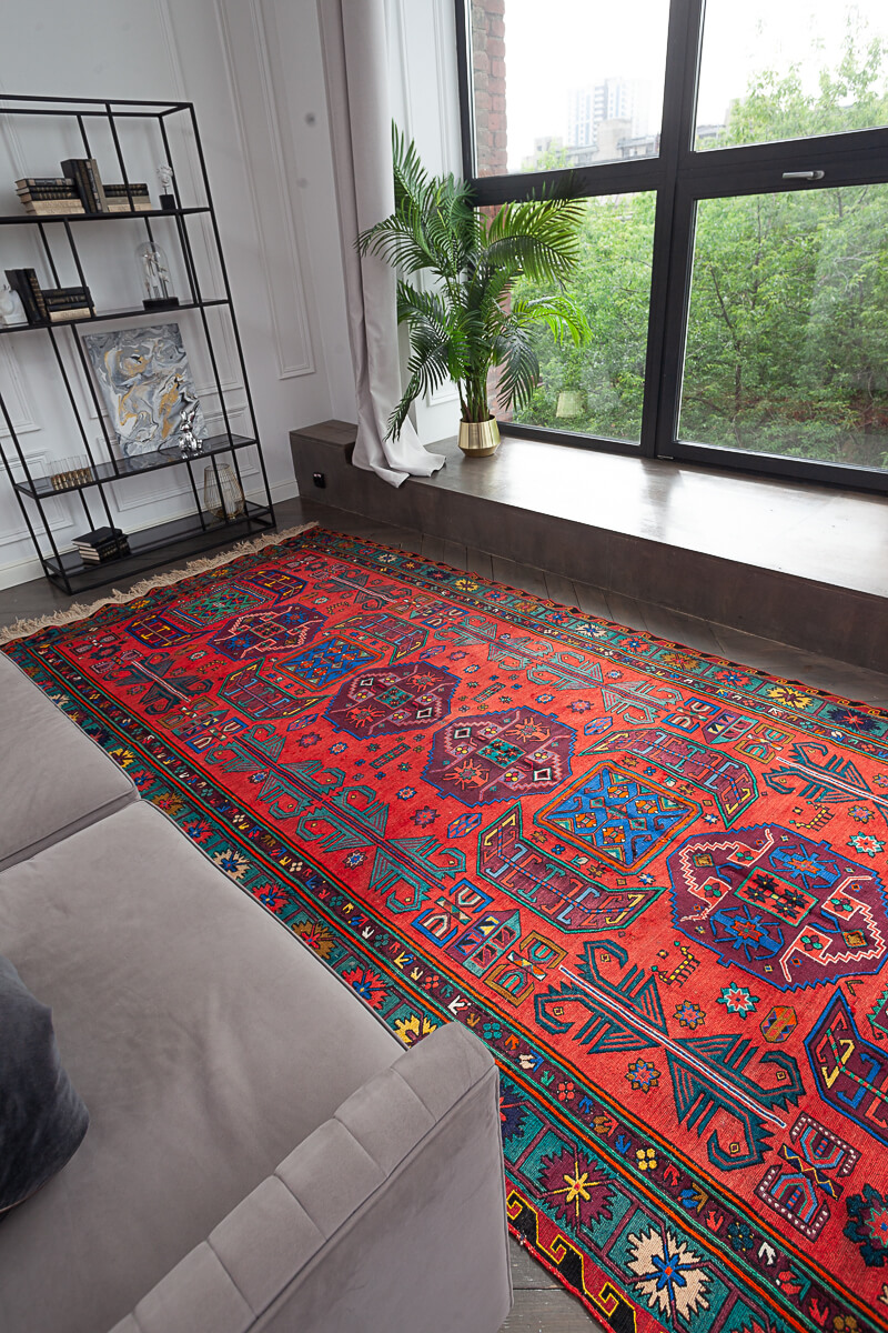 Цвет ковра в жизни менее яркий, чем на фото. Просто у сумахов есть такая особенность - получаться на фото и видео ярче. Мы ничего не корректируем.